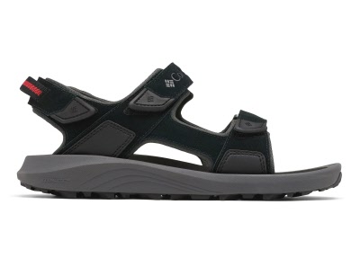 This suede and synthetic leather sandal features a three-strap closure system for a full adjustable fit.